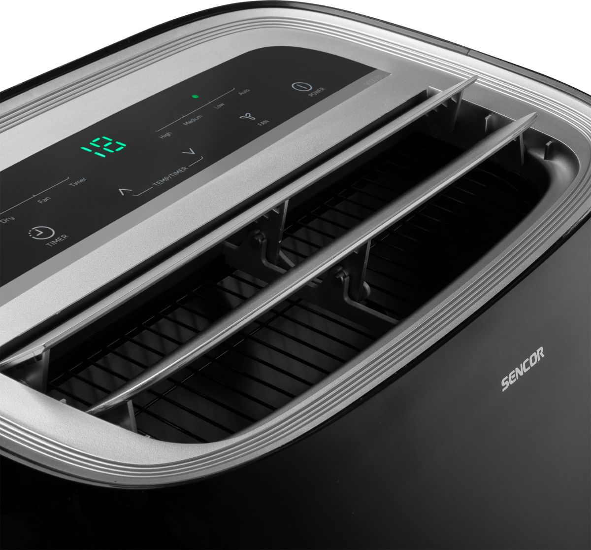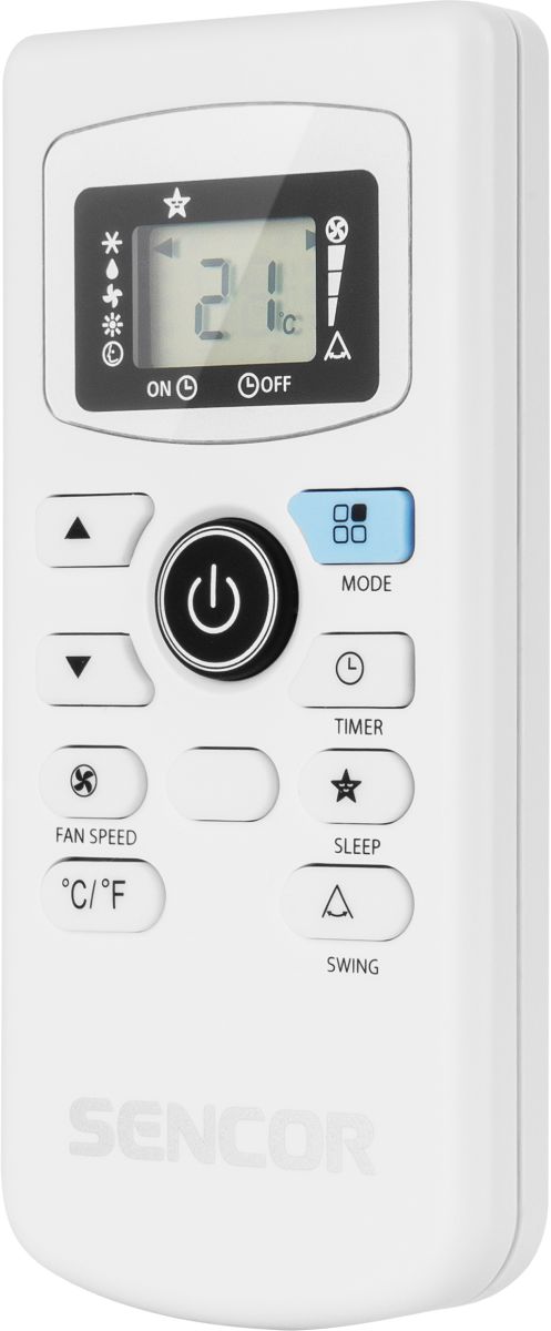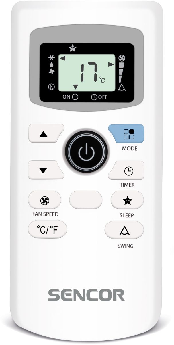 Ovládací panel s LED diplejom zobrazuje: teplotu, režim, režim sleep, rýchlosť ventilátora, nastavenie časovača