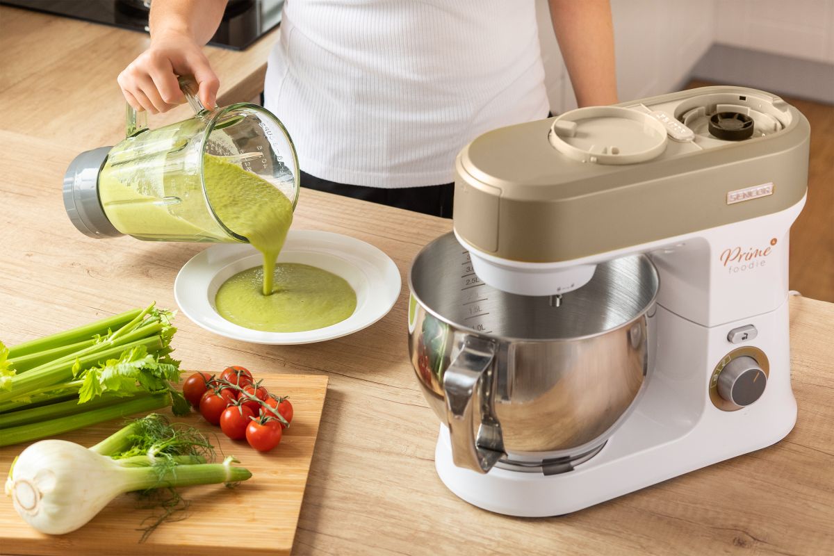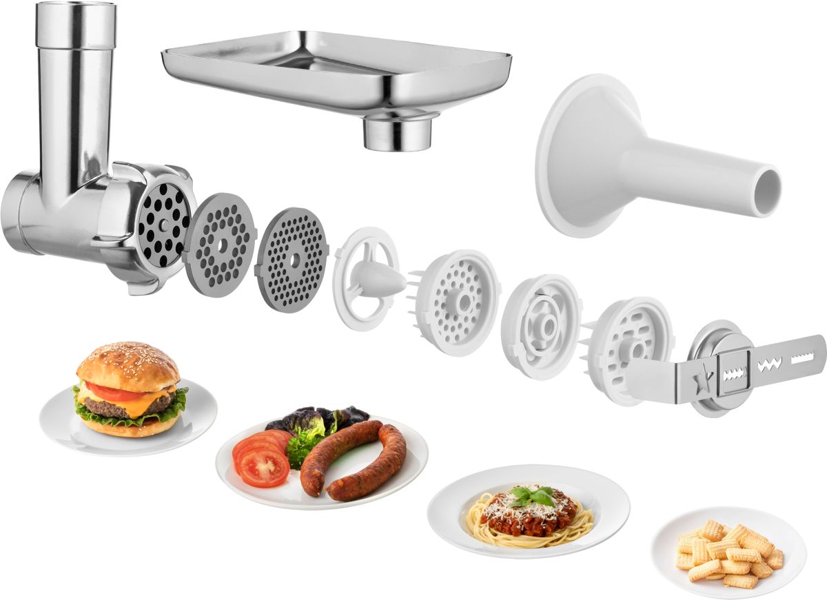Kuchynský robot Robustný a silný motor s výkonom 1 200 W Extra veľká 5 l antikorová nádoba na všetky druhy cesta (0,8 kg tuhé cestá, 2,7 l jemné cestá) 6… Čítať viac …