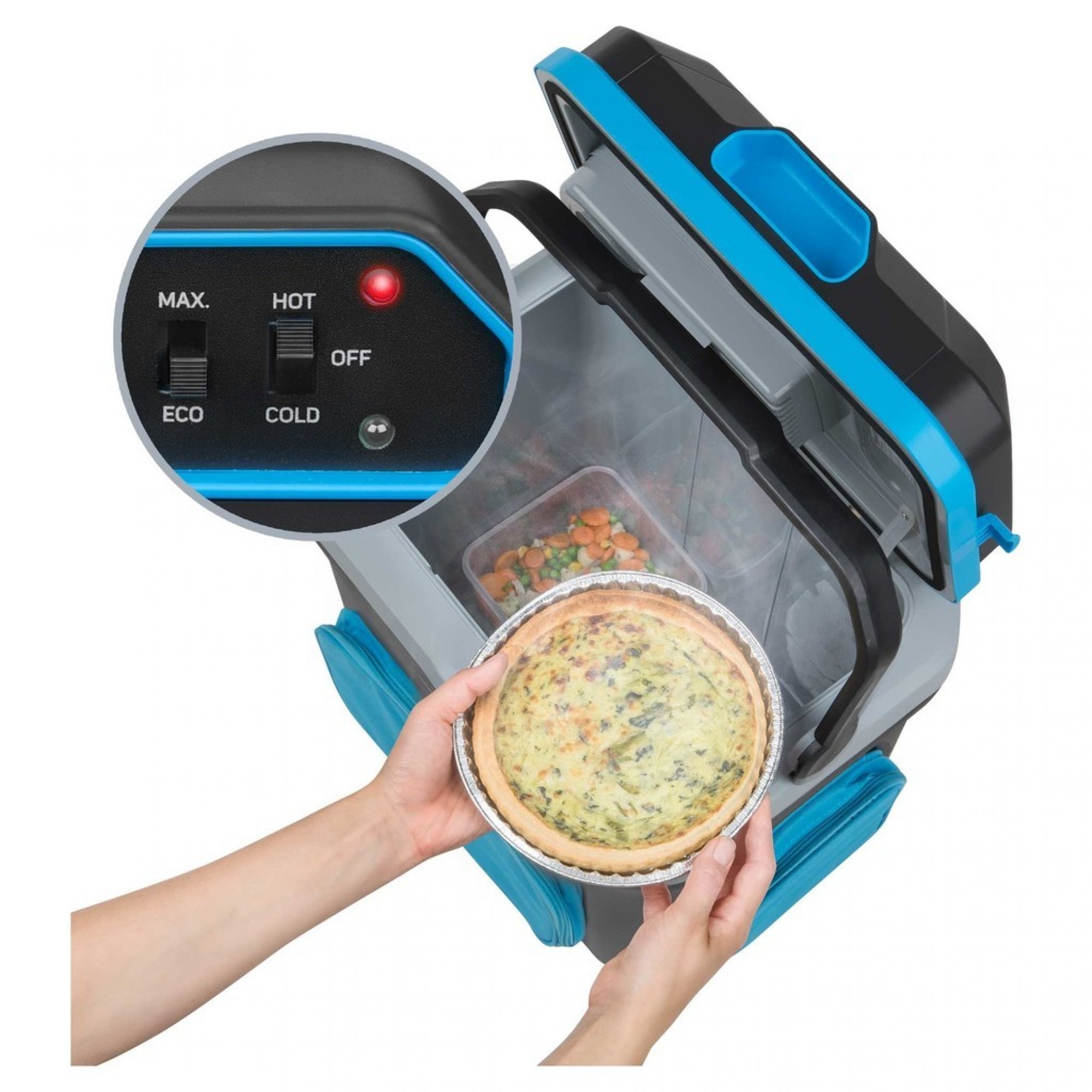 Praktická a elegantná autochladnička s veľkorysým, 24-litrovým objemom disponuje kvalitnou izoláciou a dvojitým zabezpečením proti náhodnému otvoreniu. Tento šikovný a užitočný pomocník na cesty vyniká nízkou spotrebou elektrickej energie a možnosťou napájania v aute s prípojkou 12 V alebo prostredníctvom 230-V elektrickej zásuvky. Samozrejmosťou je dokonalé chladenie až o 16 °C oproti okolitej teplote. Autochladnička však dokáže aj zohrievať – a to až do 60 °C. Vaše potraviny tak zostanú vždy také, ako potrebujete – teplé alebo studené. Nepochybne oceníte veľkú rukoväť na čo najpohodlnejšie prenášanie, dlhé napájacie káble a praktický farebný LED indikátor.