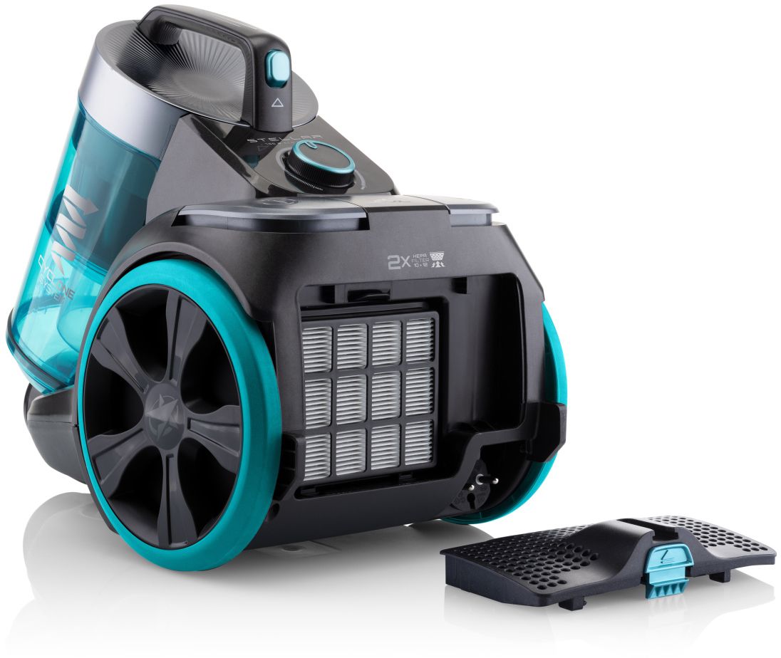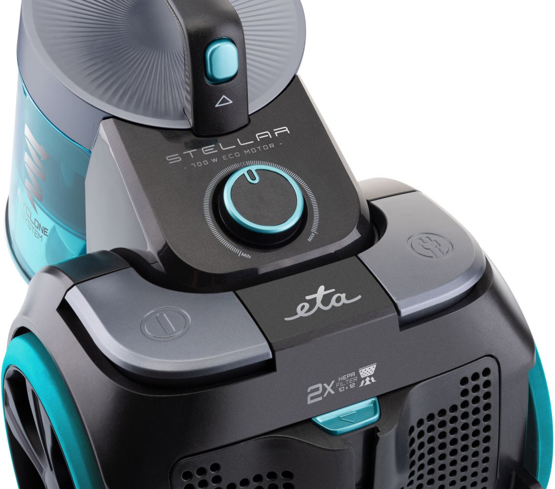 Bezvreckový podlahový ECO vysávač STELLAR, príkon 800 W, sací výkon 180 W, hlučnosť 79 db(A), 2 x HEPA filter, akčný rádius 10 m, dĺžka kábla 7 m, PRÍSLUŠENSTVO: univerzálna podlahová hubica s výsuvnou kefou, parketová hubica, hubica na čalúnenie, štrbinová hubica, kefka s jemnými štetinkami, objem nádoby na prach 1,5 l, farba: modrá/čierna