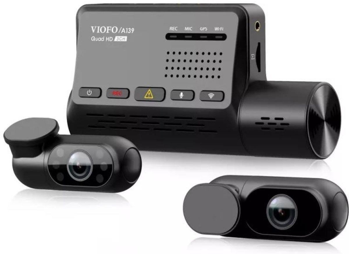 VIOFO A139 3CH disponuje diskrétnym hlavným modulom bez displeja, ktorý zároveň plní funkciu prednej kamery. V module máme zabudované GPS a WIFI bežiace na pásmach 2.4Ghz a 5Ghz. Do hlavnej časti zostavy navyše zasunieme kameru do interiéru vybavenú IR diódami a kamerou na zadnej strane.