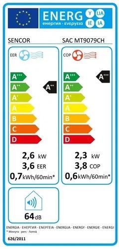 • Chladiaci výkon 9 000 BTU/h, výkon vyhrievania 8 000 BTU/h