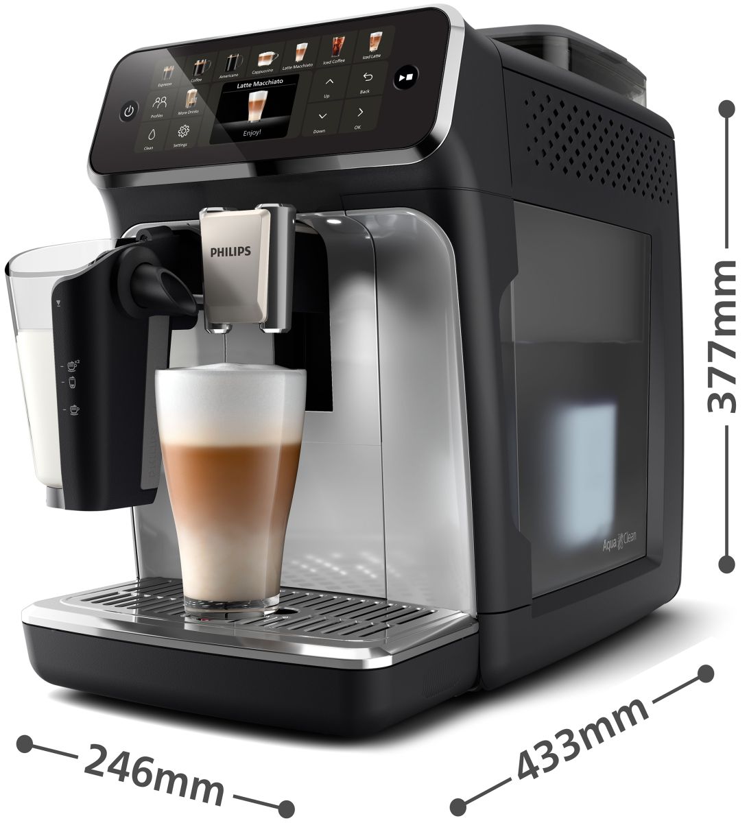 Zamatovo jemná mliečna pena vďaka inovatívnemu napeňovaču mlieka LatteGo s jednoduchou a rýchlou údržbou a to aj z rastlinného mlieka.