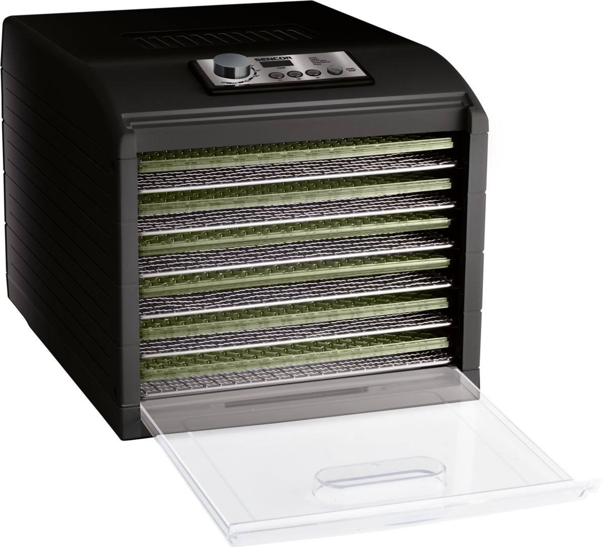 Priehľadné dvierka a podnosy umožňujú okamžitú vizuálnu kontrolu nad stavom sušenia