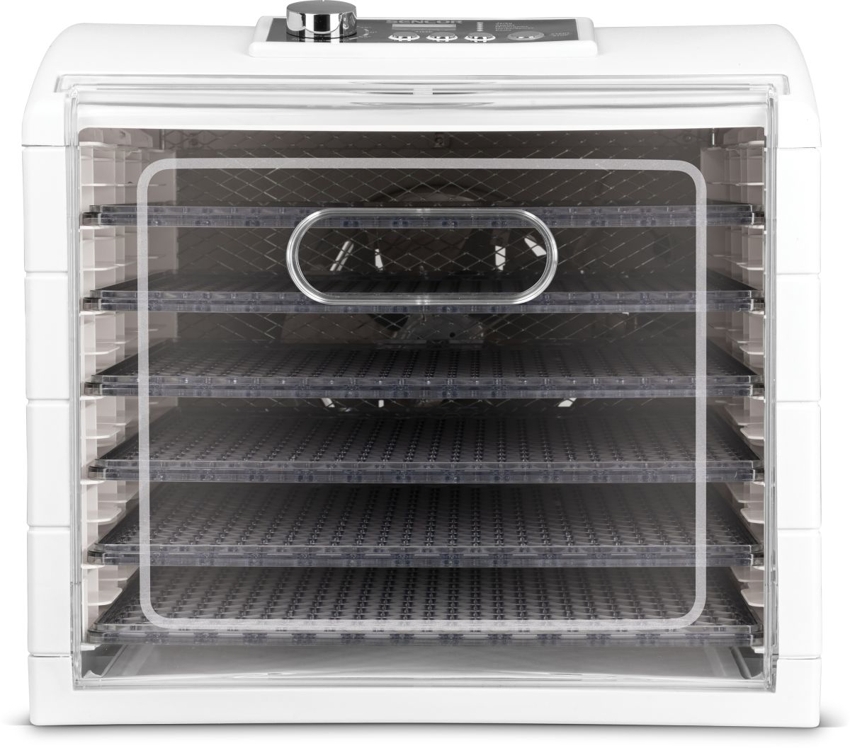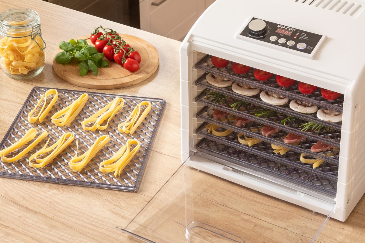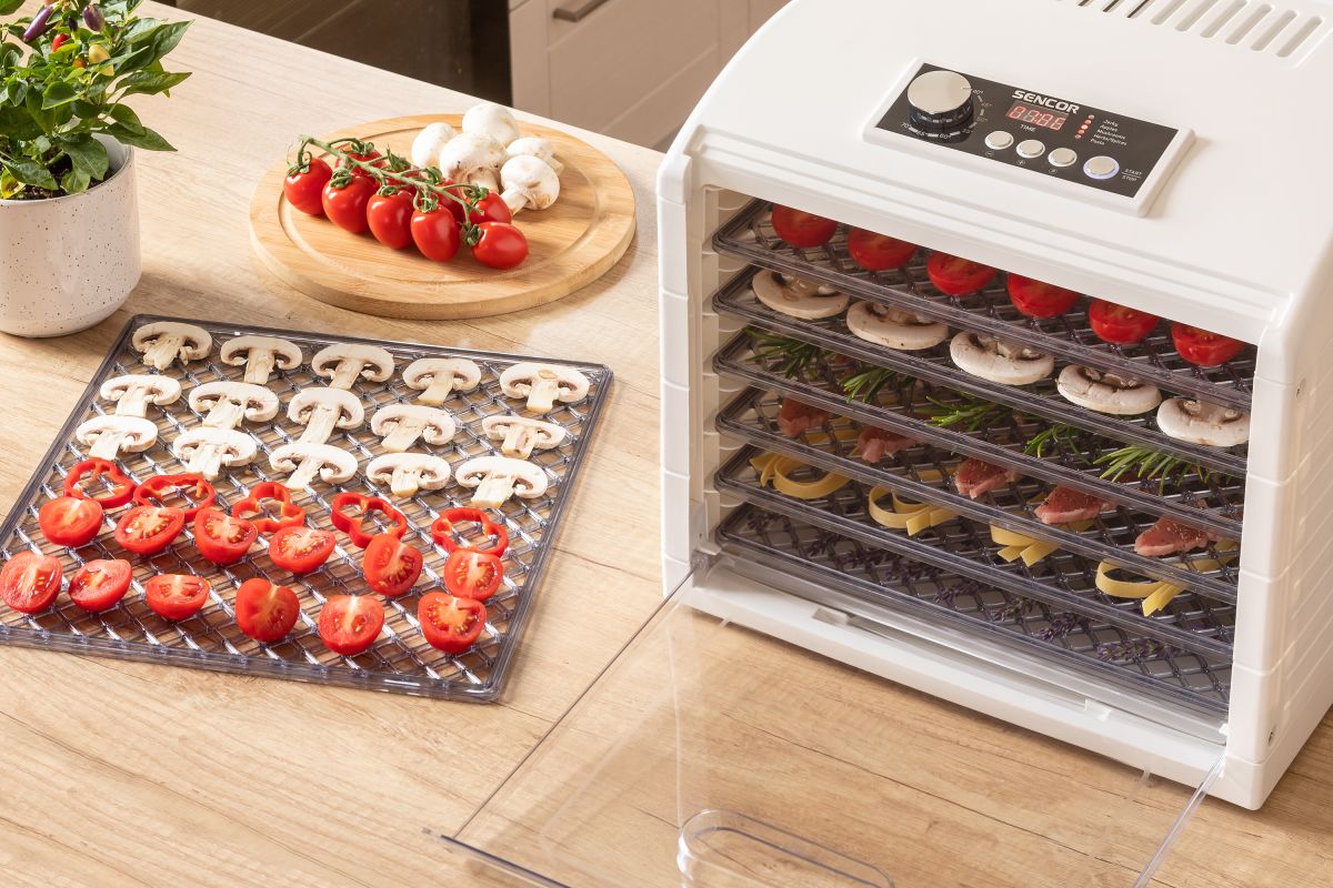 Priehľadné dvierka a podnosy umožňujú okamžitú vizuálnu kontrolu nad stavom sušenia