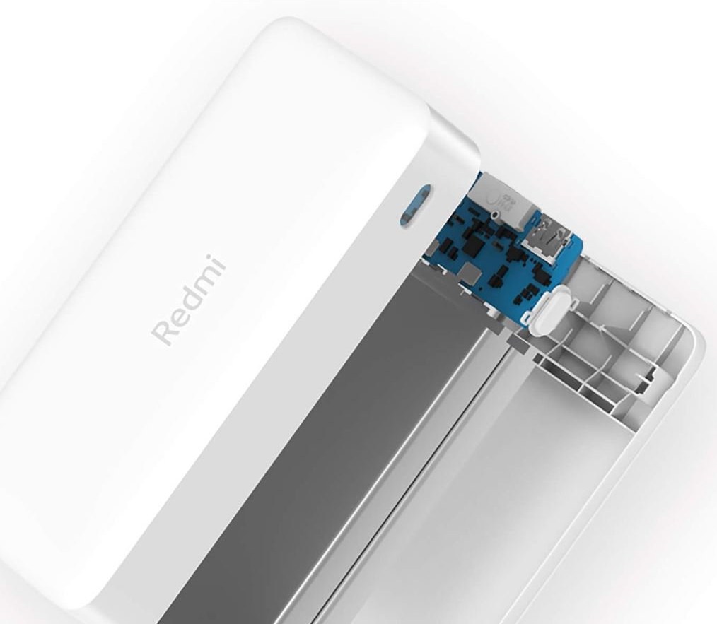 Powerbanka Redmi Fast Charge s kapacitou 20 000 mAh má dva vstupné porty, port USB-C a port Micro-USB, vďaka čomu je plne kompatibilná so štandardnými káblami a zaisťuje rýchle nabíjanie samotnej power banky.