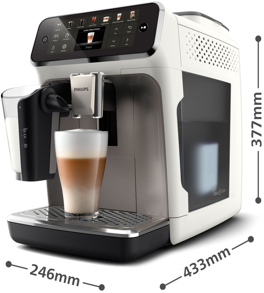Zamatovo jemná mliečna pena vďaka inovatívnemu napeňovaču mlieka LatteGo s jednoduchou a rýchlou údržbou a to aj z rastlinného mlieka.